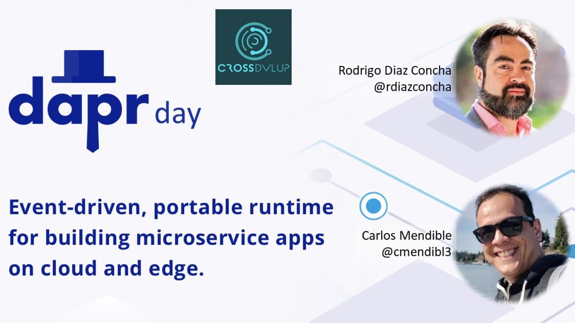 Dapr day es el meetup para conocer y preguntar todo sobre Dapr Rodrigo Díaz Concha, Microsoft MVP y Microsoft Regional Director Carlos Mendible, Sr Cloud Solution Architect @Microsoft Dapr Day es un evento híbrido que permitirá a todos unirse desde la comodidad de su hogar o en persona En Dapr Day podrás verlo en acción