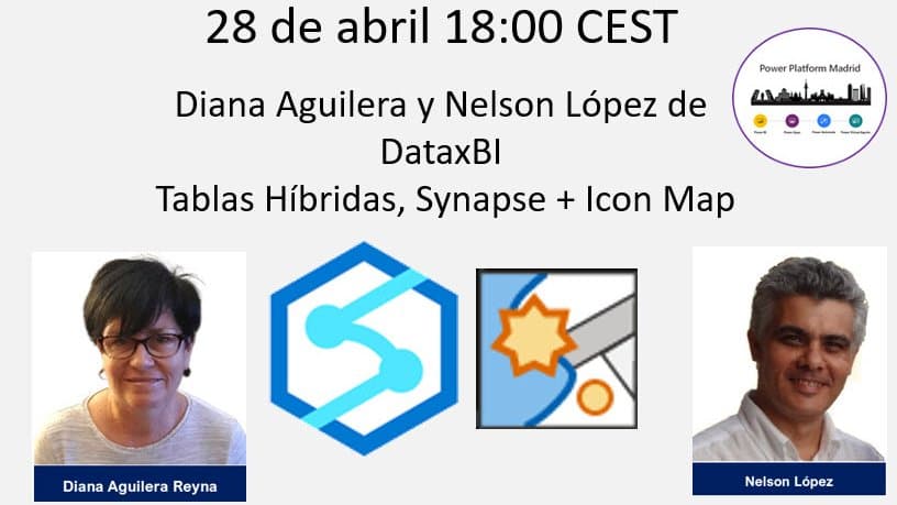 Os esperamos este jueves 28 de abril a las 18:00 CEST con esta magnífica sesión de Diana Aguilera y Nelson López, de DataxBI en la que nos van a hablar de tablas híbridas, Synapse más Icon Map Recordad que sortearemos el libro de Ana Mª Bisbé "Curso de Power BI" de Anaya Multimedia entre la lista de asistentes del evento anterior