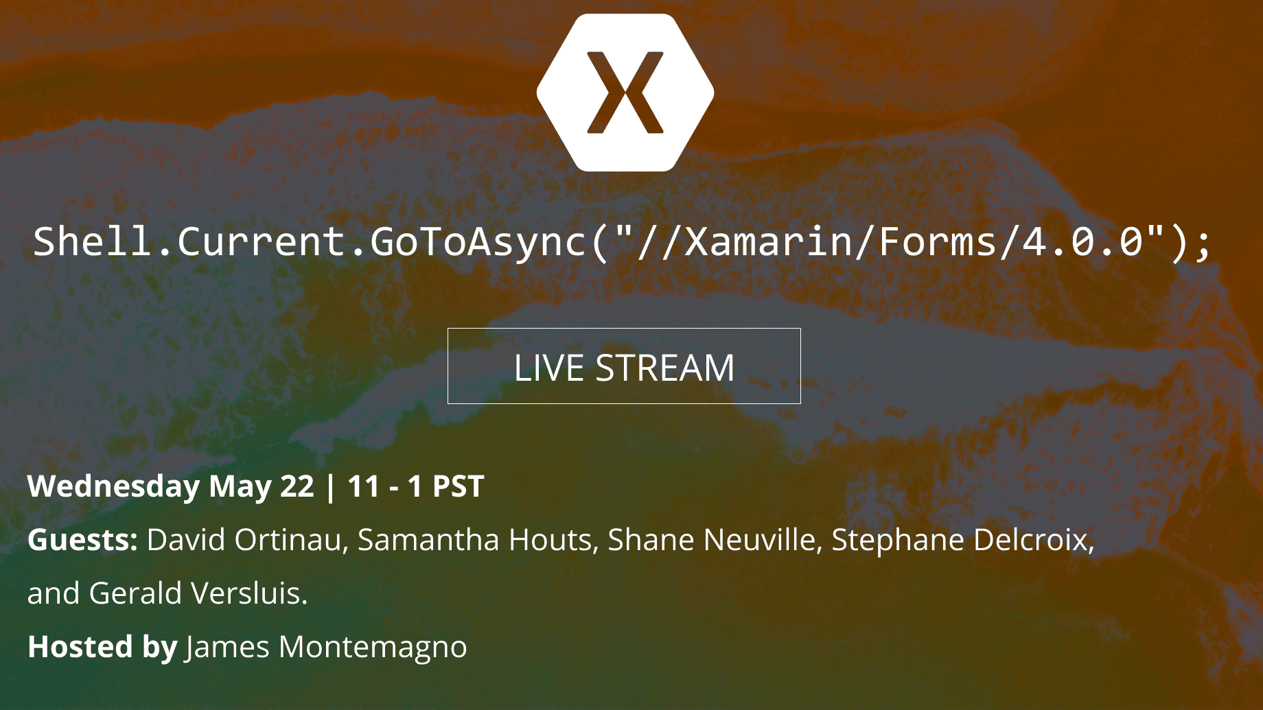 Acceso a la formación: Detalle: Join the Xamarin team as we unveil all of the new features in Xamarin.Forms 4.0 During the live stream you will hear from the Xamarin.Forms team themselves including David Ortinau, Samantha Houts, Shane Neuville, and Stephane Delcroix who will walk through fast renderers, updates to image source, tab index, accessibility, community contributions, and the brand new Shell!